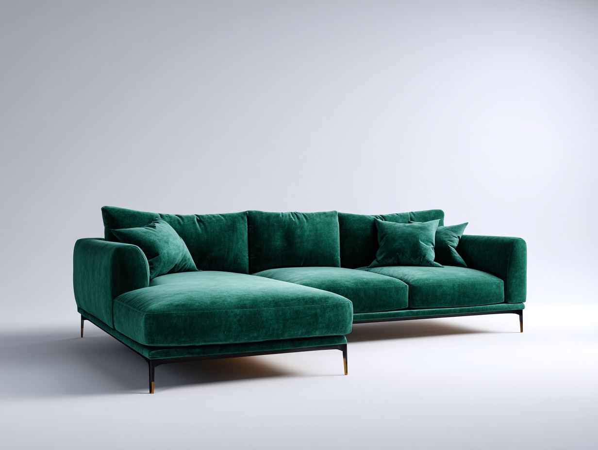 Divano angolare dal design contemporaneo, pensato per un soggiorno elegante.